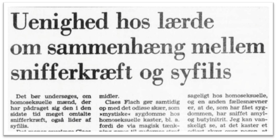 Blandt bøsserne selv mødtes sygdommen først med skepsis. At en dødelig sygdom skulle ramme specifikt homoseksuelle mænd virkede for mange utroværdigt. Nogle aktivister frygtede, at der var tale om bevidst skræmmekampagne for at rulle de rettigheder tilbage, som var blevet vundet i 1970’erne. Men kilderne viser, at Landsforeningen for Bøsser og Lesbiske hurtigt var i kontakt med aktivister og læger i USA. Her stod det klart, at sygdommen var reel, og at den ramte hårdt i homomiljøerne.
